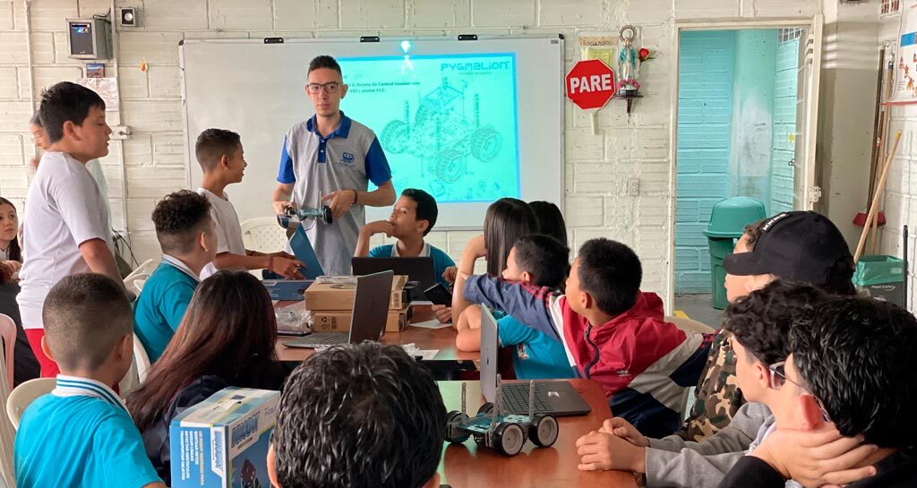 “Mi jornada es en la tarde y mientras duermo en la mañana puedo estar haciendo algo productivo, aprender más y que me sirva para un futuro. Me gusta la robótica porque me enseñan a programar y, sobre todo, le puede servir a uno para ser programador en sistemas. He aprendido a compartir con personas de diferentes grados y a armar piezas del robot que no había armado”, manifestó Juan Pablo Jaramillo, estudiante de la Institución Educativa Fe y Alegría José María Vélez.