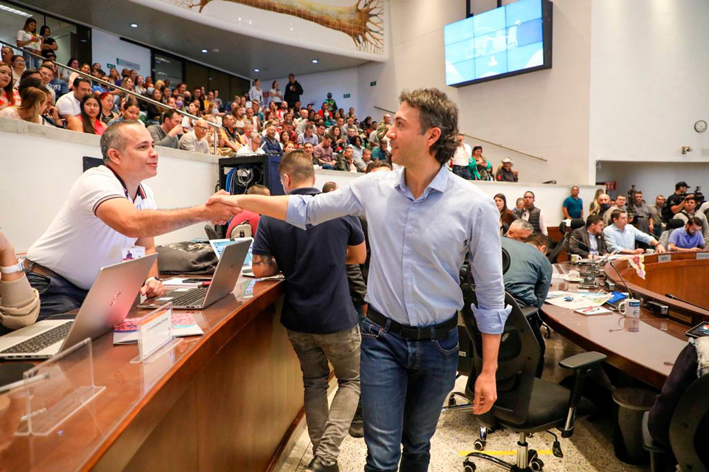 Este sábado 1 de octubre, el alcalde de Medellín, Daniel Quintero, instaló las sesiones ordinarias del Concejo Distrital recordando la importancia de que esta corporación dé trámite y apruebe proyectos fundamentales para la ciudad relacionados con la venta de la participación de EPM en Tigo-UNE y la transformación del Aeropuerto Olaya Herrera en una Empresa Industrial y Comercial del Estado, así como otros cuatro proyectos que ya se habían radicado anteriormente.