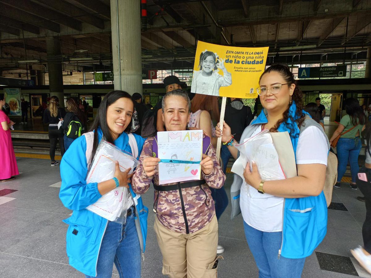 Con 16.000 cartas, escritas por niños y niñas para sensibilizar los adultos sobre el maltrato y abuso infantil, en Medellín inició la caravana “Enseña con amor, educa con el corazón”, que realiza el Distrito este viernes, hasta la 1:00 p. m., para generar espacios de promoción del buen trato y el buen vivir en las familias de la ciudad. Los primeros textos fueron entregados entre los usuarios del sistema Metro en las estaciones Acevedo, San Javier, Poblado, San Antonio, Industriales y Estadio.