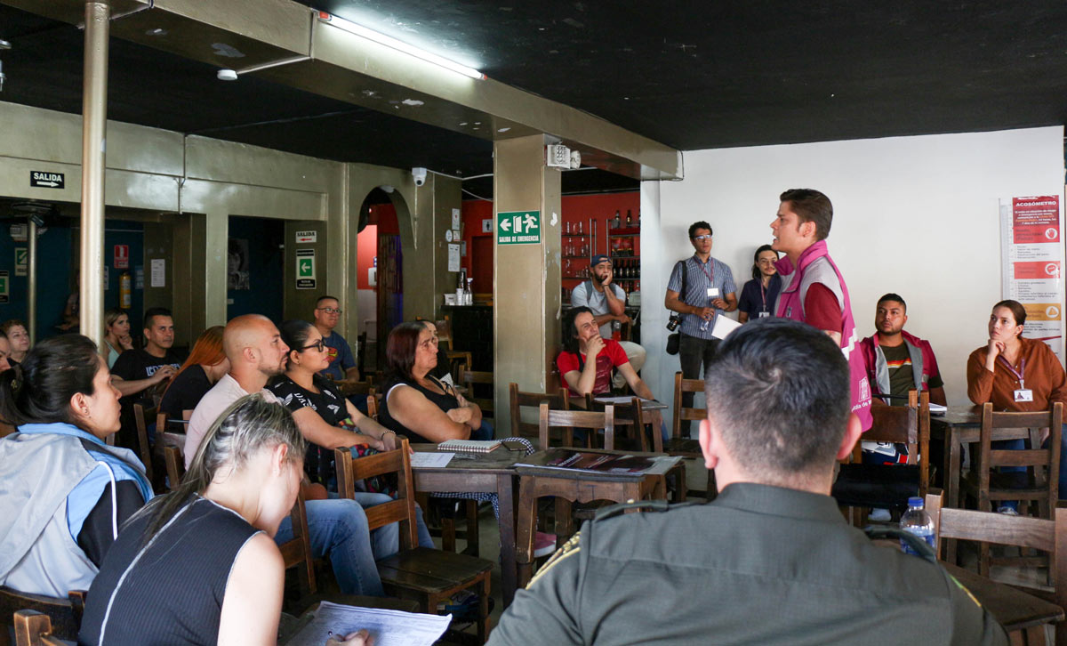 “Queremos que el día, la noche, la calle y todos los espacios sean libres de violencias para las mujeres. Por eso estamos llevando las rutas de atención a las mujeres que sufren violencias basadas en género en establecimientos nocturnos, además del código fucsia para los casos en los que son víctimas de violencias sexuales y la sensibilización en prácticas de autocuidado y consumo consciente para que todas estemos libres de violencias”, aseguró la secretaria de las Mujeres, Angélica Ortiz.