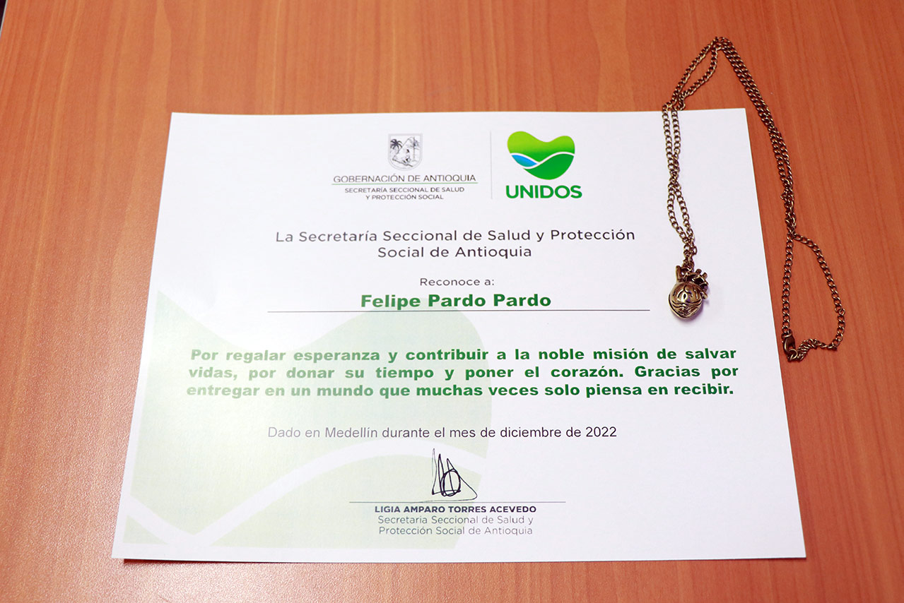Para Tatiana María Quiceno Ibarra, directora de Calidad y Redes de Servicios de la Seccional de Salud de Antioquia, desde la coordinación de bancos de sangre se quiso hacer un reconocimiento a esas personas que son leales a la donación y que siempre lo hacen “y que en el caso de Felipe, gracias a ese aporte vital, se han podido salvar 12 vidas en el último año y queríamos que él se sintiera reconocido por esa labor, porque él es de ese tipo de personas que dan sin esperar nada a cambio y hoy queríamos darle un poquito de lo que él le da a los demás”.