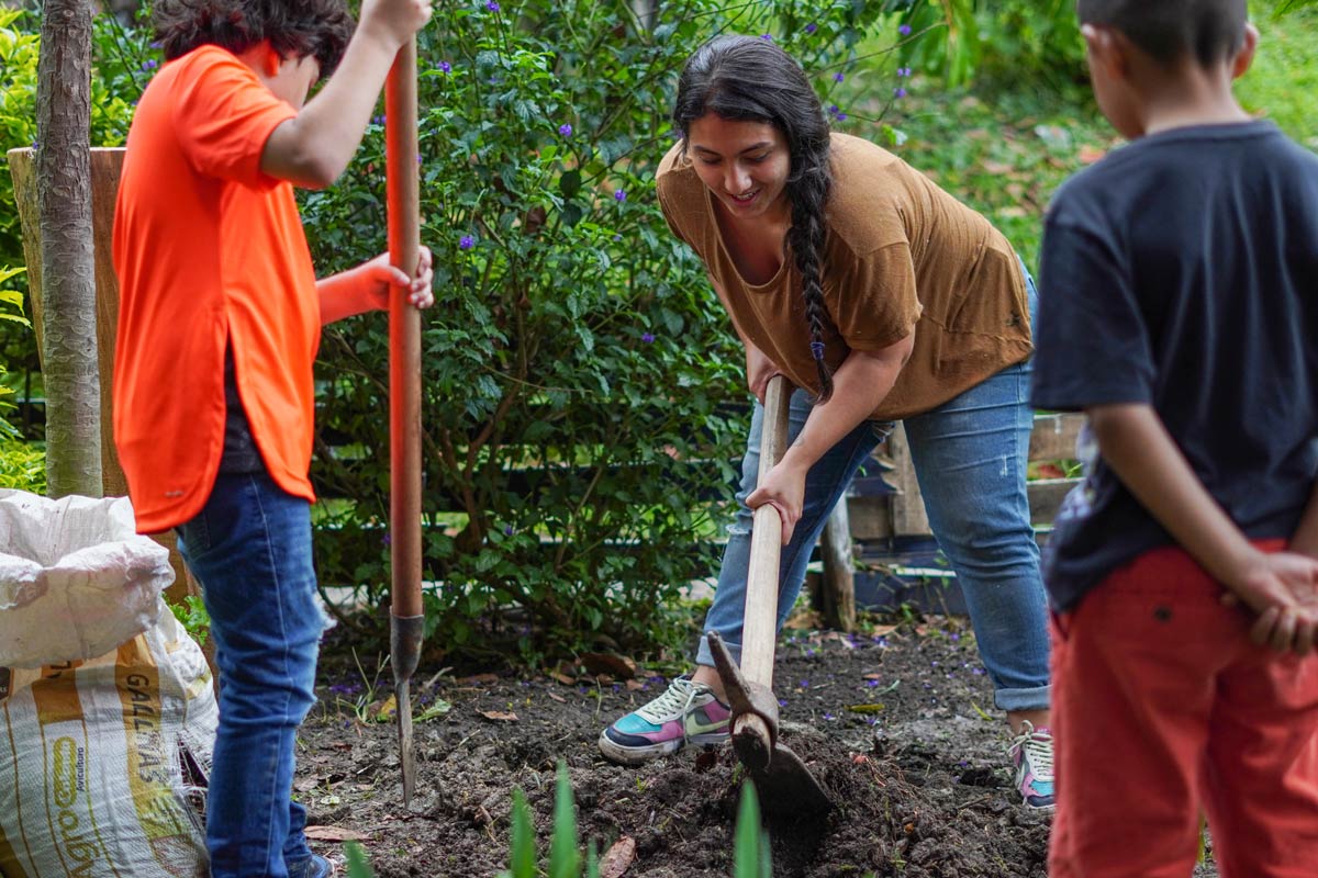 Yina Gil, habitante de la comuna 8 -Villa Hermosa e integrante del colectivo Hierba Mala, llevó a cabo acciones pedagógicas con los niños y adolescentes del barrio Pacífico respecto al aprovechamiento de residuos sólidos para convertirlos en compostaje.