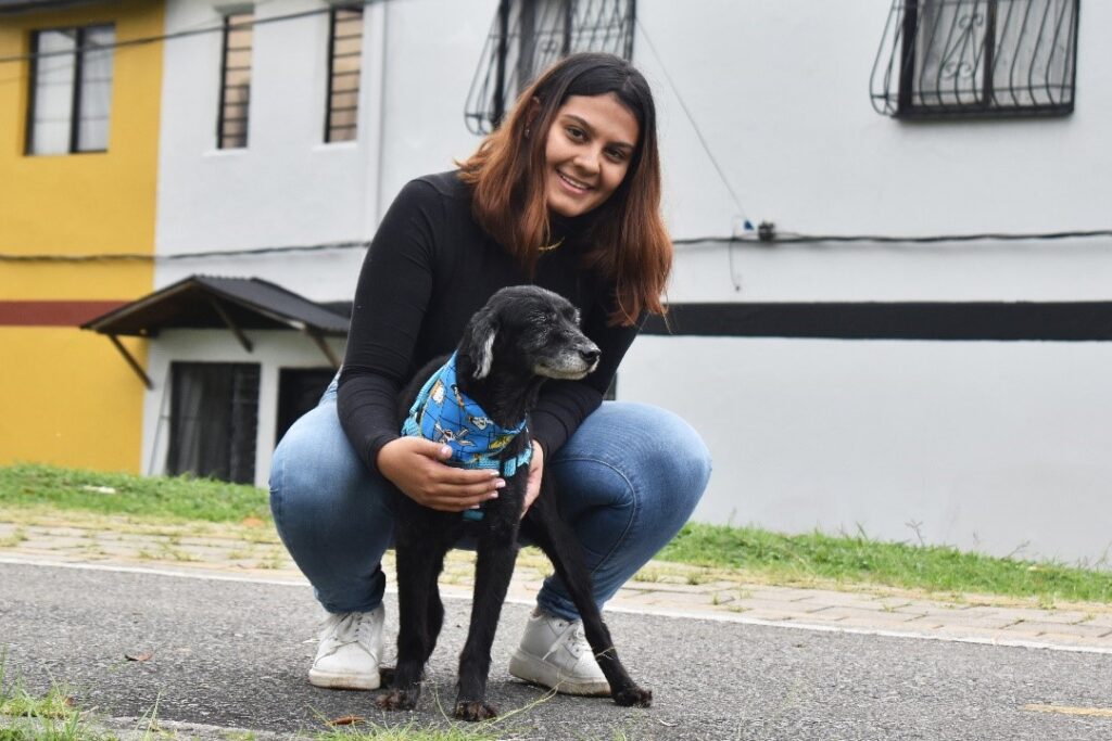 “Yo vi el video de Lennon y me enamoré de él; vi su historia en las redes; que ya llevaba 12 años esperando una oportunidad y, por eso, quise que el tiempo que le queda lo tuviera con una familia que le brinde mucho amor. Lennon es muy tímido, pero es demasiado amoroso; todo el tiempo quiere que lo carguen, que lo mimen; y es muy tranquilo y muy juicioso”, manifiesta Juliana Hernández Galeano, adoptante de Lennon.