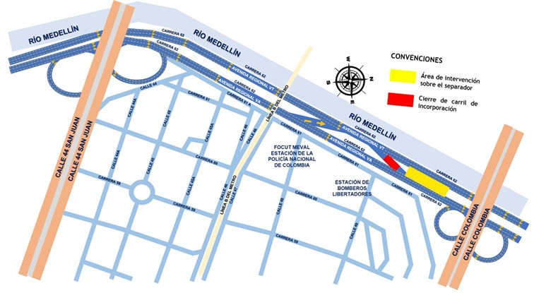 • A partir del martes 2 de mayo, EPM iniciará las obras de reparación de un tramo del interceptor nororiental, por lo que será necesario realizar el cierre total, durante las 24 horas del día, del carril de incorporación que une la calzada occidental con la calzada oriental de la avenida Regional, a la altura de la calle 49 (Ayacucho).