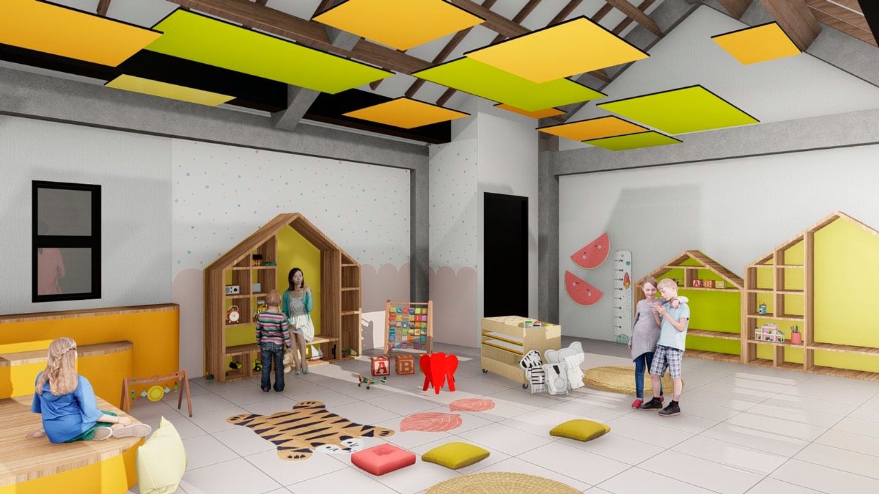 Además de las salas de desarrollo, esta nueva sede tendrá una zona de alimentación o comedor, cocina, lavandería, zona administrativa, sala de atención a familias, baños, zona recreativa, área de circulación, rampa de acceso, escaleras de emergencia y zonas verdes.