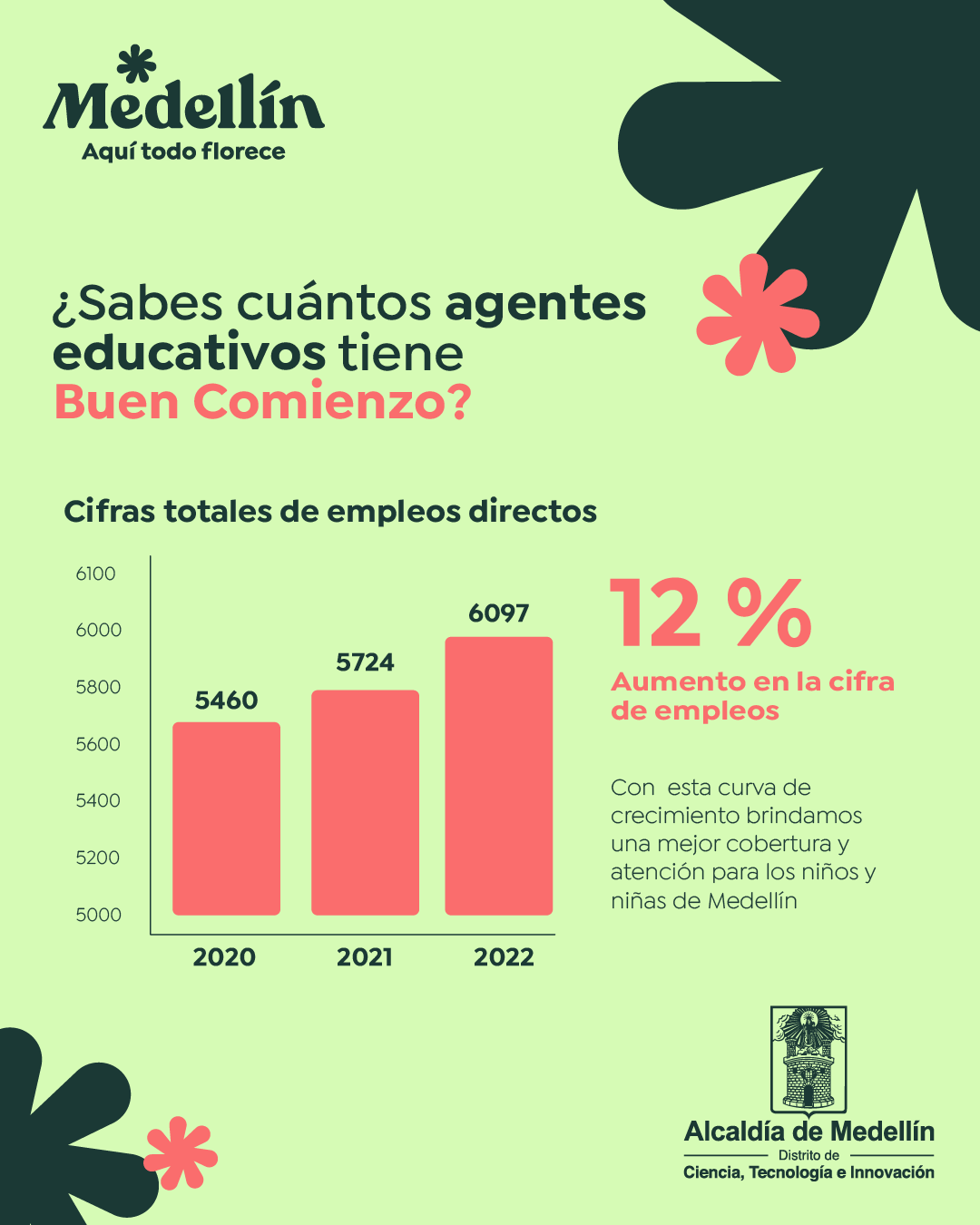 La Alcaldía de Medellín, a través de la Unidad Administrativa Especial Buen Comienzo, tiene más de 3.000 cupos disponibles para la atención a las mamás gestantes y lactantes, y niños y niñas menores de dos años residentes en el Distrito, para acceder a la oferta de acompañamiento integral.