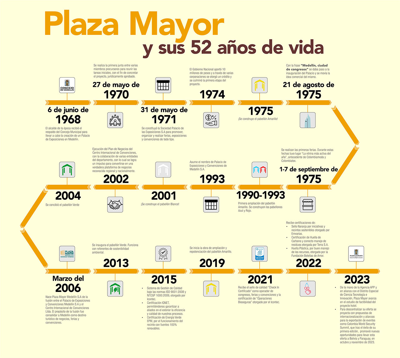 La concepción del Pabellón Verde en 2004, su posterior inauguración en 2013 y la fusión entre el Palacio de Exposiciones y Convenciones Medellín S.A y el Centro Internacional de Convenciones Ltda -CIC-que consolidó a nuestra ciudad como destino turístico de negocios, ferias y convenciones.