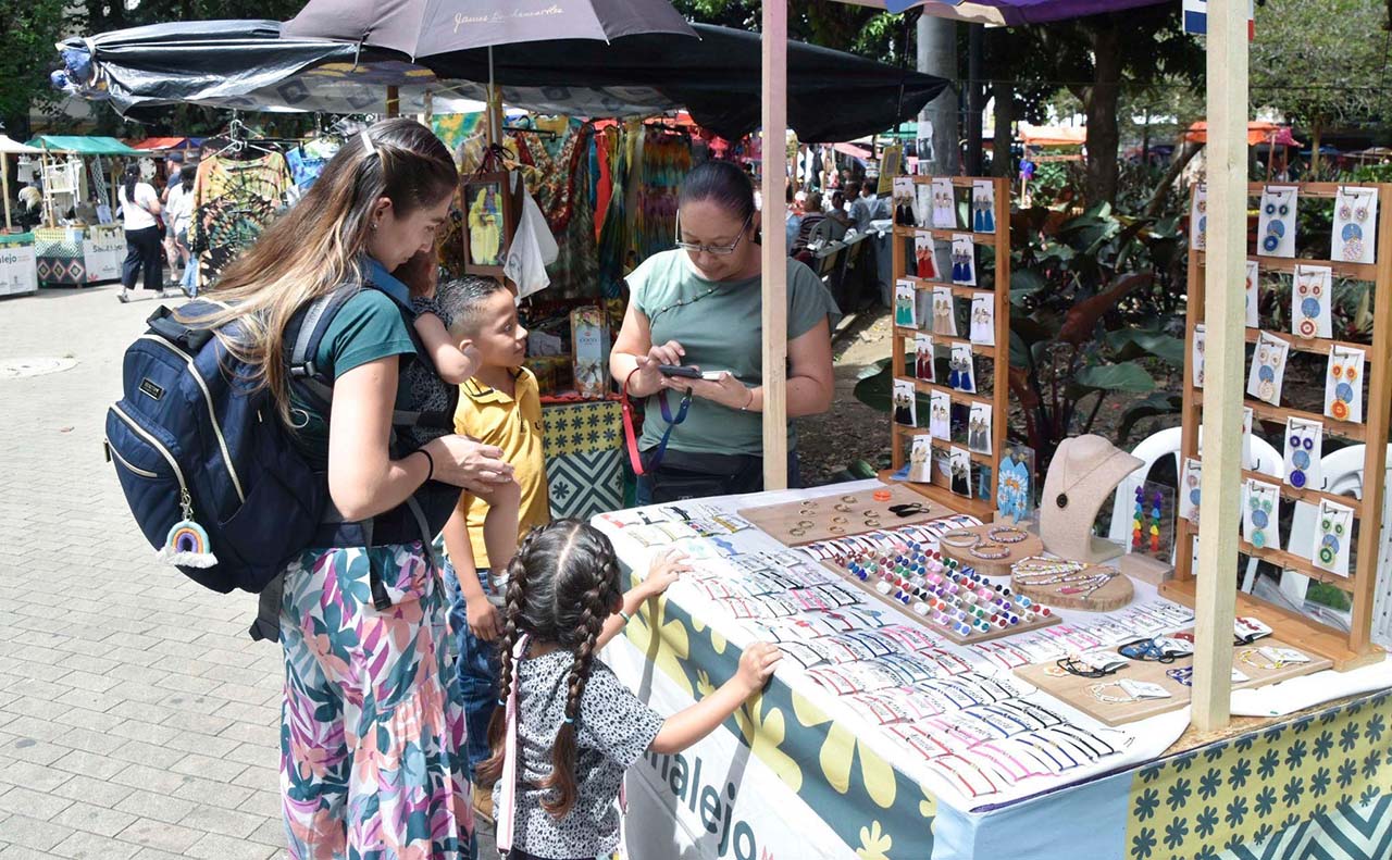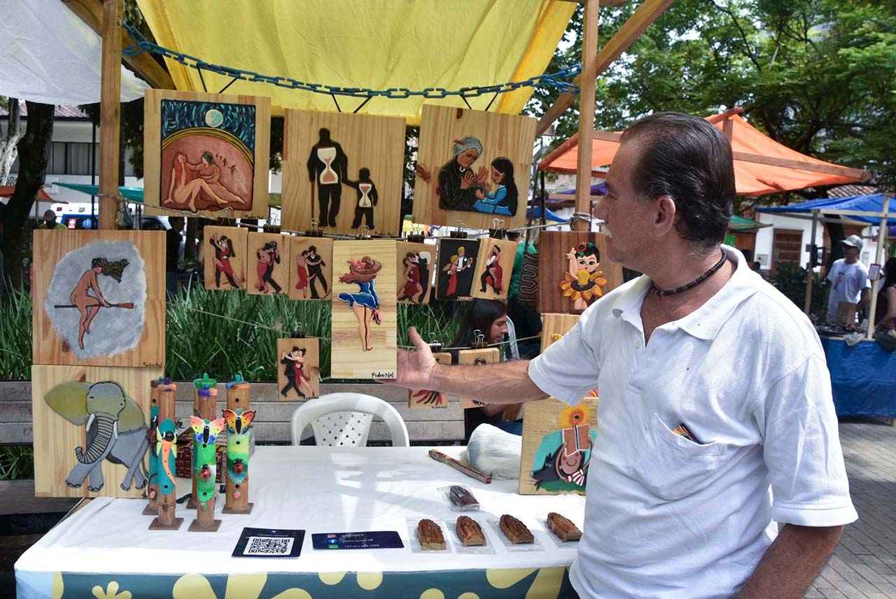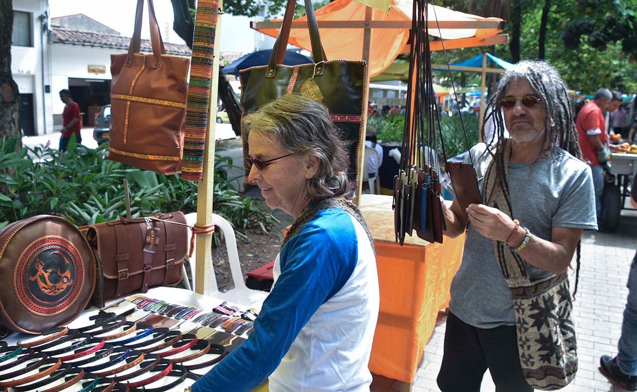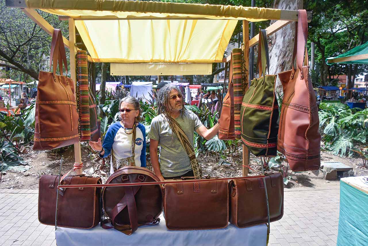 La manilla, el bolso de cuero, títeres en croché, piedras con distintas funciones, inciensos, lanas de todos los colores y la estatua de Bolívar cabalgando, constituyen parte del paisaje y de un tesoro inmaterial que articula uno de los lugares más icónicos del Centro de Medellín y que conserva una esencia exquisita, por las diversas generaciones que siguen confeccionando sus diversos productos -fuera de maquila- en el mercado de Sanalejo.