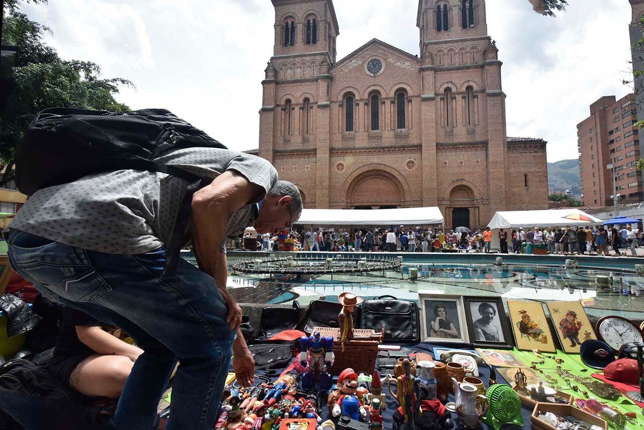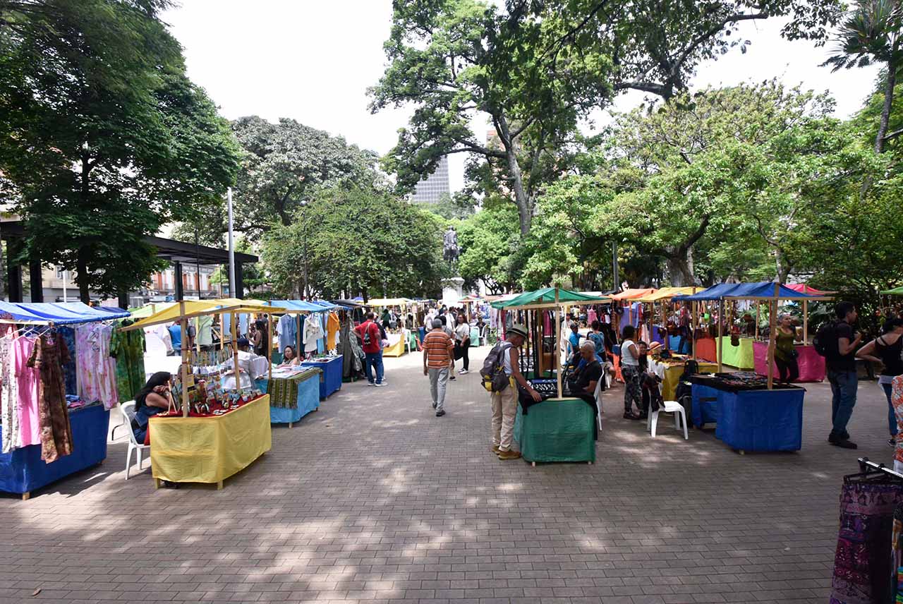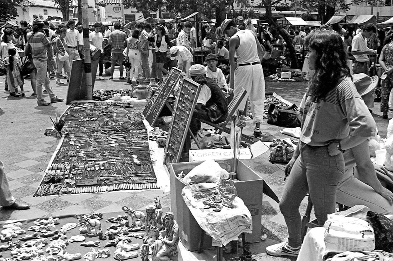 || 📸 ¡Medellín está viva… y la contamos en imágenes! || El Sanalejo, es un mercado artesanal que empezó a existir de manera espontánea y masiva a principios de los años setenta del siglo pasado en el parque adyacente a la Catedral Metropolitana -Parque Bolívar-. Allí se daban cita los artistas creadores o “Demiurgos” como teatreros, saltimbanquis y mimos para hacer reír a propios y a extraños.