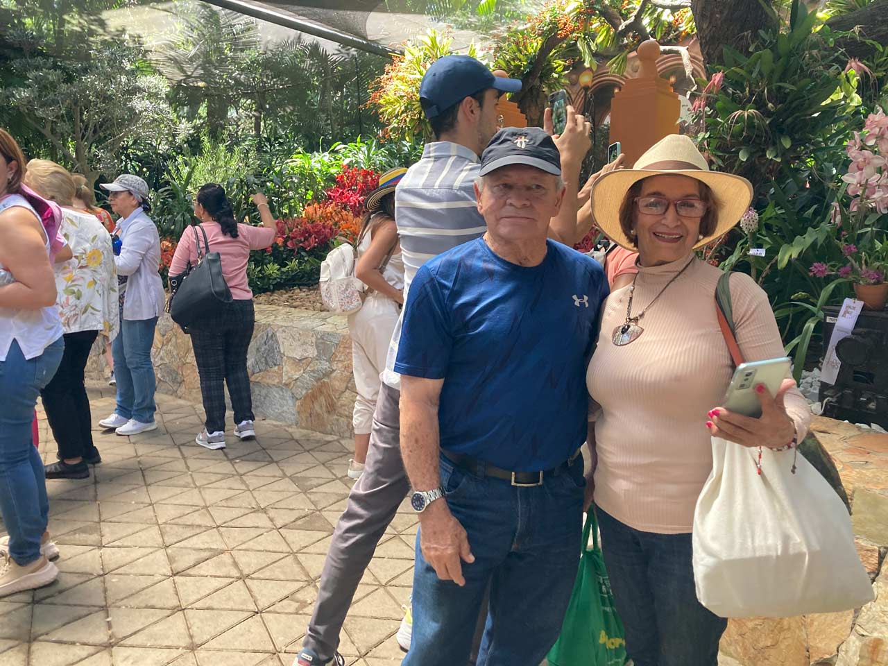 Con una espontaneidad, dos visitantes del municipio de Titiribí, Aura Celina Gamboa de Gómez y su esposo Arturo Gómez Morales, hablan de su sentir y experiencia con las orquídeas, las cuales cultivan sin carácter comercial, y con las que están embelleciendo la finca de su propiedad en la vereda El Balcón.