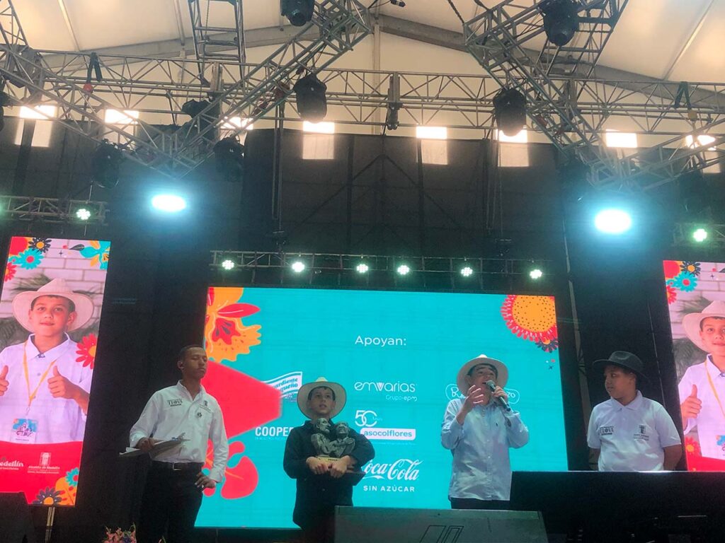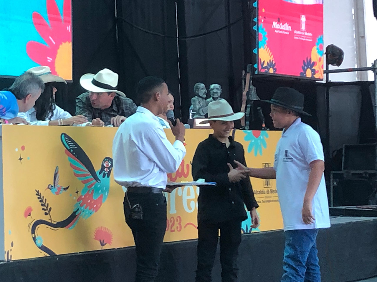 Kevin Duque “El Paisita de Oriente”, Rey Infantil de la Trova, Ciudad de Medellín y el Subsecretario de Arte y Cultura, David Alexander Gómez Cadavid