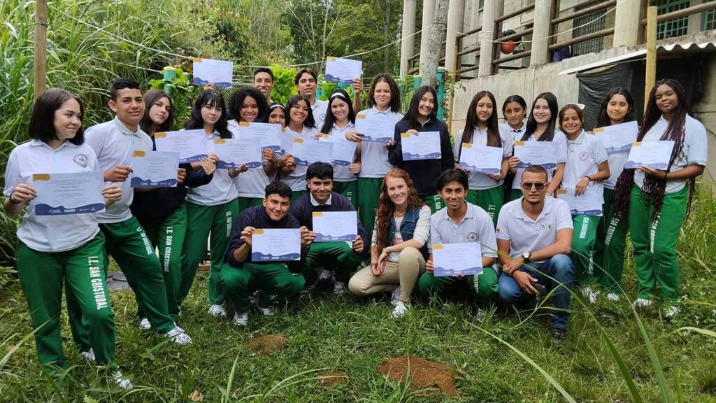 Otro aspecto importante de la capacitación realizada es el aprovechamiento de las nuevas tecnologías para mejorar los rendimientos de las acciones. Es decir, combinar lo artesanal con la Inteligencia Artificial, tal como lo explica Juan Camilo: “entonces, este proceso, lo llevamos de la mano con cada uno de ellos, donde los capacitamos. Hubo módulos de aprendizaje interactivos, aplicamos la inteligencia artificial en ciertos puntos de la pedagogía. Y con estos procesos, lo que hicimos fue capacitarlos para que ellos solos, de aquí en adelante, pudieran continuar con el proceso de la huerta, que es un proyecto sostenible y sustentable en el tiempo”.