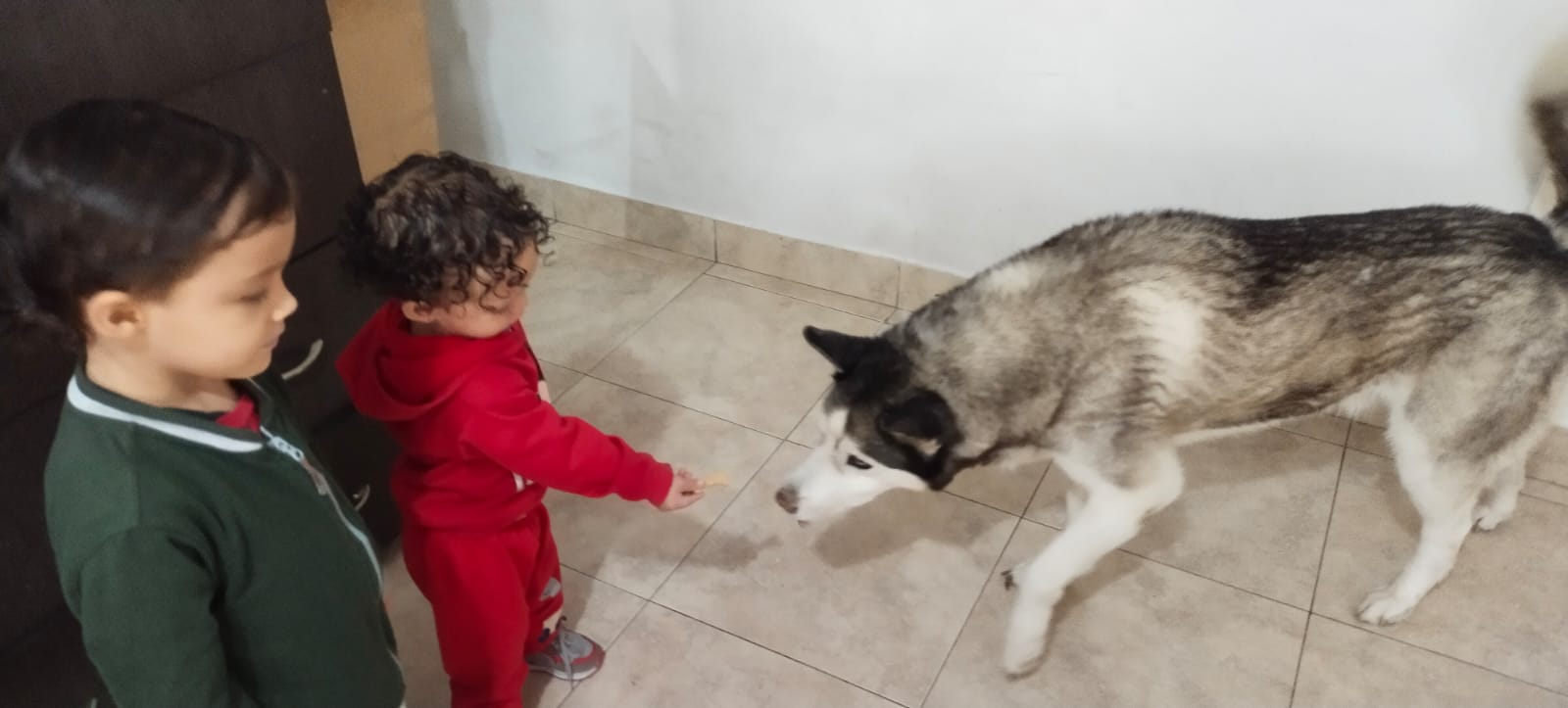 En sus innumerables y entretenidos relatos de buen conversador cuenta cómo se le cayeron dos dientes mientras jugaba con un amigo en el jardín y describe detalladamente a los otros integrantes de su familia multiespecie. “Yo tengo muchos perros. Uno que se llama Perseo, otra Isis, Zeus y Celeste. Celeste es más viejita y cuando se emociona empieza a orinar, Isis es muy adorable, Zeus también es adorable y Perseo es un poquito cansón y lindo”.