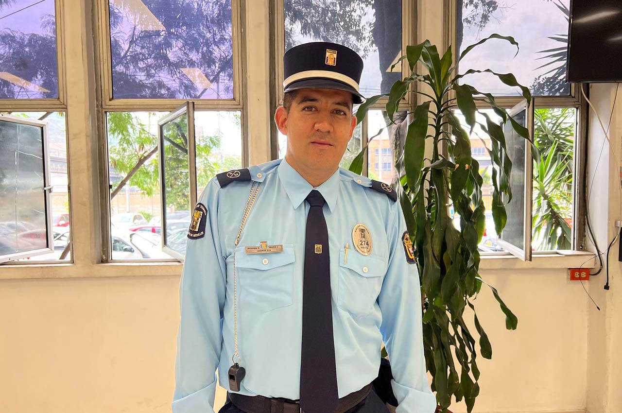 Norber Alberto Piedrahíta lleva 27 años como agente de tránsito y hace 14 años es el coordinador del grupo Móvil Operativo, el cual ha recibido varias condecoraciones, al igual que sus agentes por sus actos de valor y servicio eficiente a la ciudadanía. “Este grupo se dedica a controlar en la ciudad el transporte informal, a los llamados ‘chiveros’ que prestan servicio colectivo en los barrios y al transporte ilegal que presta servicio por medio de plataformas tecnológicas. También controlamos los piques ilegales en la ciudad, los requerimientos de control y demás en todas las periferias de Medellín y barrios con situaciones de orden público más complejas, donde hacemos intervenciones especiales con la Policía. Del mismo modo, hacemos acompañamientos en las marchas que se presentan en la ciudad, las cuales en algunos casos son complejas y somos los encargados de hacer los acompañamientos a personajes y mandatarios que visitan la ciudad y requieren de nuestro servicio y experiencia”. indica Norber, con su uniforme azul impecable que luce con orgullo.