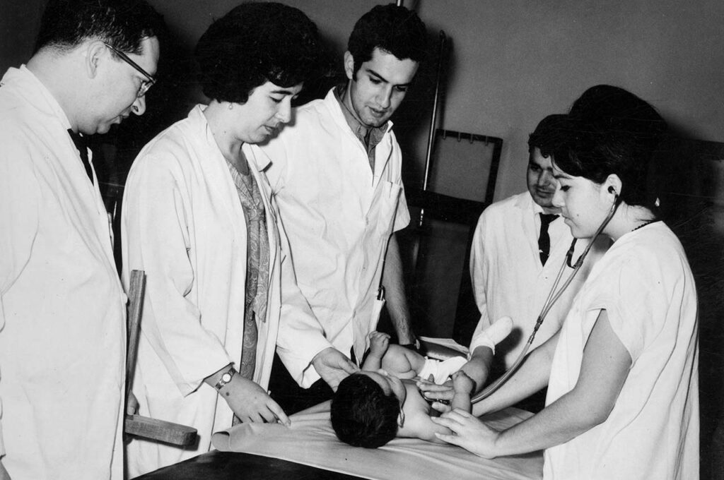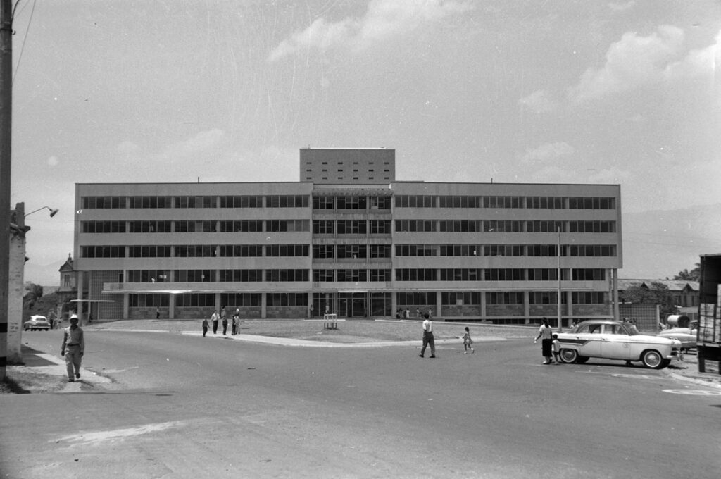 En 1958 se inaugura el edificio de la Policlínica del Hospital para atender las urgencias y se hace la primera cirugía estereotáxica en Colombia, para tratar la enfermedad de Parkinson.