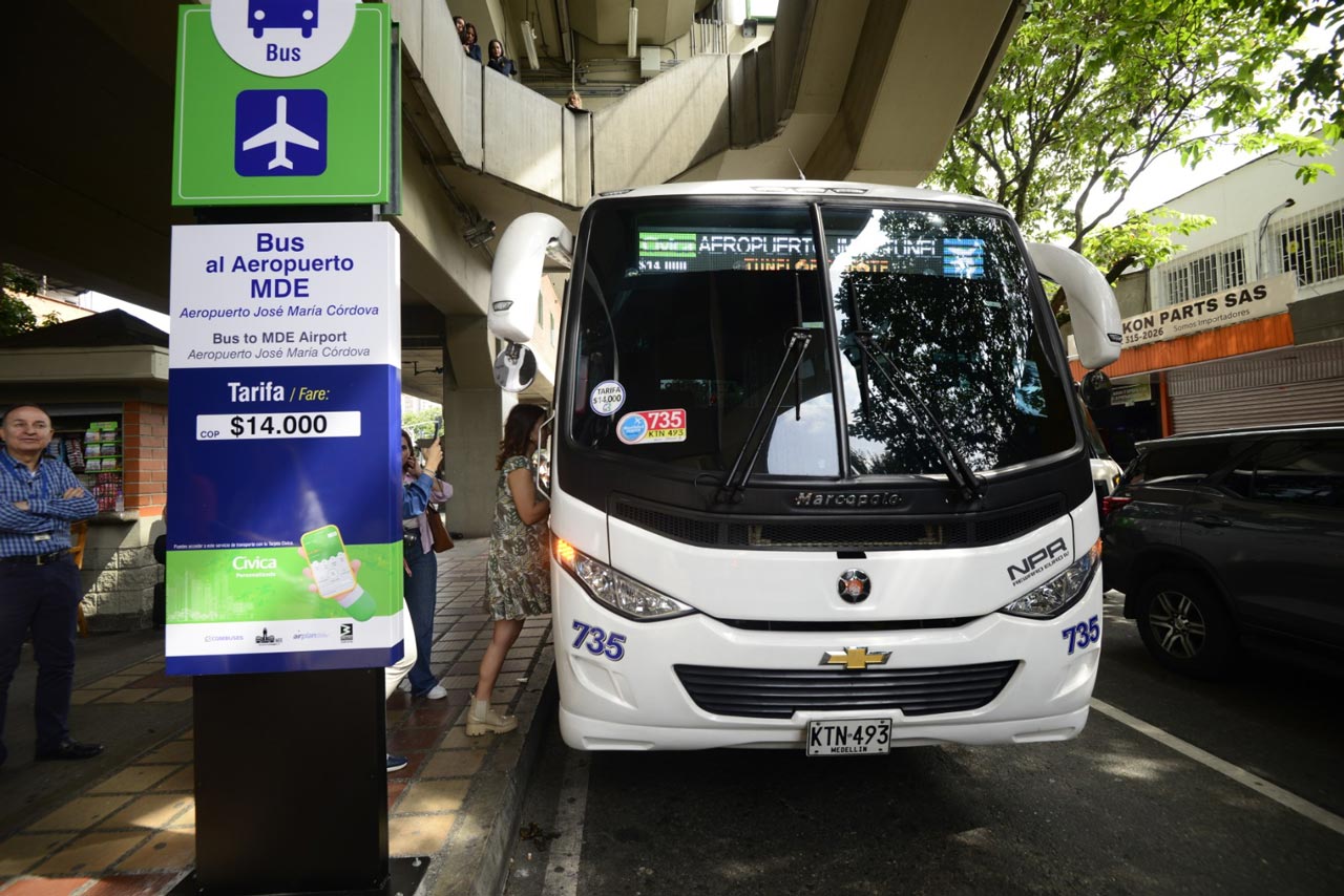 Esta facilidad se da gracias al convenio que la empresa Metro de Medellín firmó desde el año pasado con la empresa Combuses. Son en total 26 vehículos que cubren dicha ruta y que realizan diariamente el traslado de los pasajeros hasta el aeropuerto y desde allí hasta el Centro de Medellín.