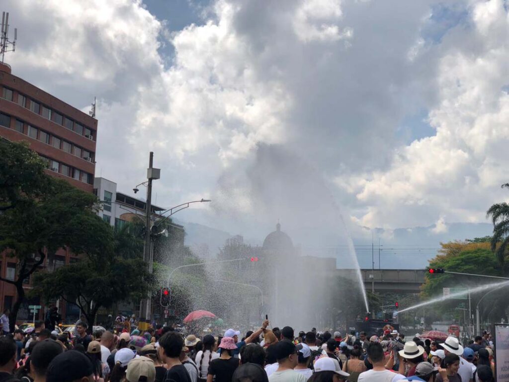 Por la carrera 70 llegamos hasta San Juan y de ahí hasta la carrera Carabobo. La mañana iba avanzando y aunque el cielo seguía grisáceo, se sentía bochorno. Una tanqueta de la Policía iba humedeciendo las vías para que los caninos no sufrieran en sus huellas con el pavimento caliente.