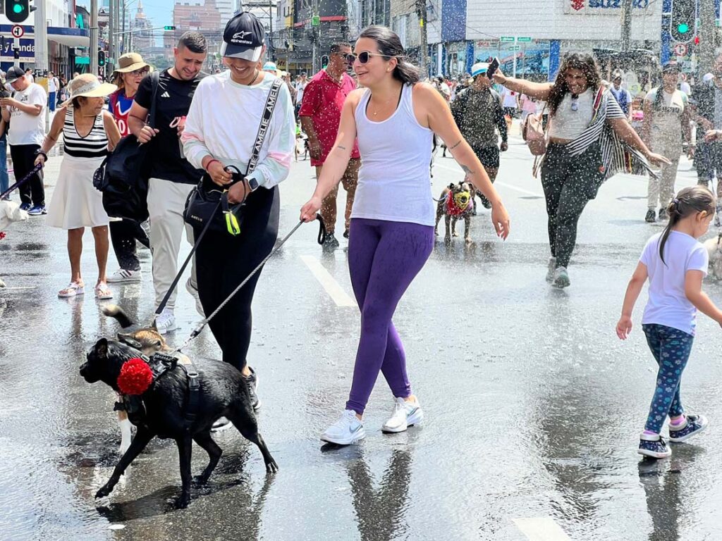 En San Juan con Carabobo, con poderosos chorros la tanqueta refrescó a caminantes que, dichosos, buscaban el agua con sus perros. Ya rondaban las 10:00 a.m. y brillaba el solazo en su esplendor. Desde ahí, por Carabobo, hasta terminar en Tierragro, en la calle 32 con Palacé. Allí, amos y mascotas descansaron, se hidrataron y muchos comieron.