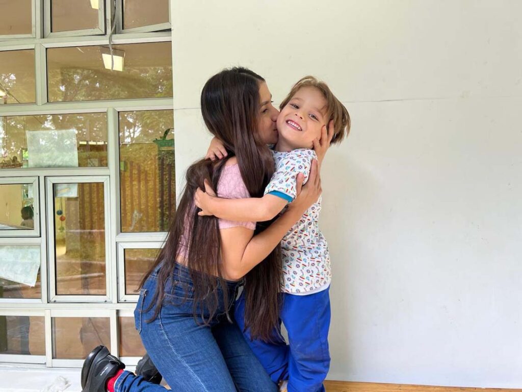 Martín y Yenifer se abrazan con fuerza. Ambos son extrovertidos. El niño, de pelo liso y rubio; ella, simpática y de expresión fluida, es su madre y en este momento lo visita en el Jardín Infantil Montecarlo de la comuna 3, Manrique, uno de los jardines que ya cuentan con Buen Comienzo 365, el proyecto estratégico de la Alcaldía de Medellín que les ofrece alimentación y experiencias pedagógicas a los niños todos los días del año.