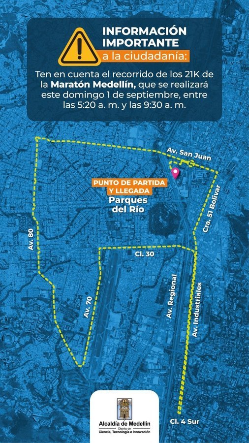 Debido a la realización de la Maratón Medellín 2024, este sábado 31 de agosto y el domingo 1 de septiembre, algunas de las calles de la ciudad estarán cerradas....