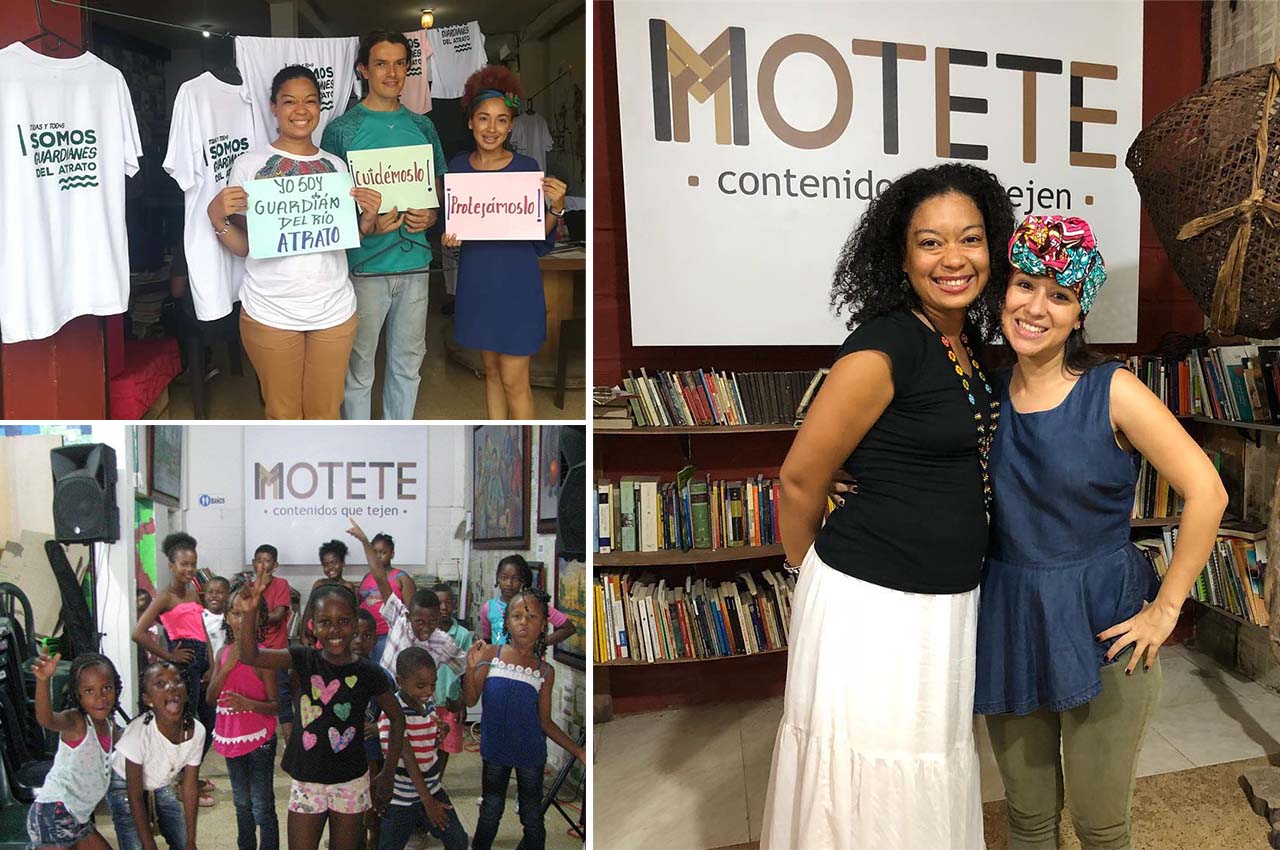 “Motete es una corporación educativa y cultural que fundamos juntos, mi esposo y yo, que ya lleva ocho años de trabajo constante desde donde hacemos Flecho (Fiesta de la Lectura y la Escritura del Chocó). Trabajamos con niños, niñas, jóvenes, en entornos escolares, en entornos no escolarizados, haciendo animación a la lectura, pero sobre todo con un propósito en el desarrollo del pensamiento crítico, para el ejercicio de ciudadanías activas, creativas, autónomas, con el desarrollo de la imaginación y también para el autorreconocimiento, porque la mayoría de la población con la que trabajamos es población afro, entonces es muy importante fortalecer la imagen propia a partir de los encuentros literarios”.