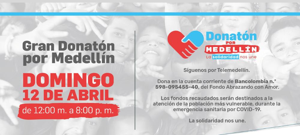 Con un llamado a la solidaridad y la unión comenzó la #DonatónPorMedellín que tiene como meta reunir 10 mil millones de pesos y 100 mil mercados para ayudar a la población más vulnerable ante la contingencia del coronavirus.