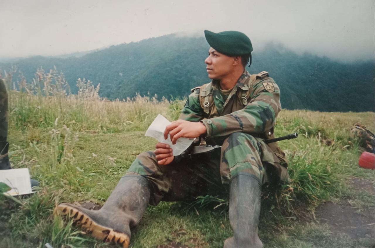 Es de Acandí, en el Darién chocoano. Su papá, que ya murió, fue policía. “Tuve una niñez feliz, pero con muchas limitaciones económicas”, recuerda Iván, a quien le cambió la vida en 1985, a los 17 años, cuando una compañía del Batallón Pedro Nel Ospina llegó a su municipio y construyó una placa polideportiva. Él cursaba noveno y dijo: “Quiero ser un soldado del área de ingenieros militares”.