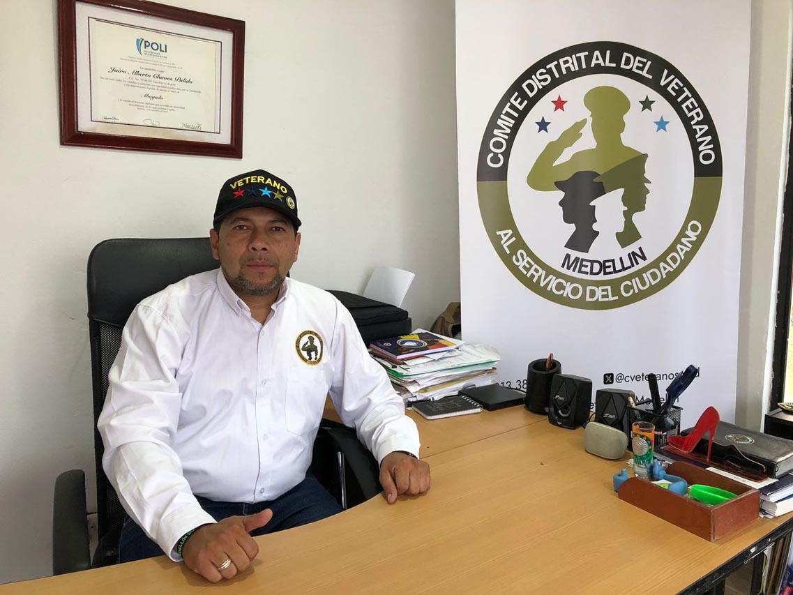 Es el presidente del Comité Distrital del Veterano de Medellín, ente que agrupa a 28 de unas 32 organizaciones de veteranos, viudas y huérfanos de agentes de la Fuerza Pública que existen en la ciudad.