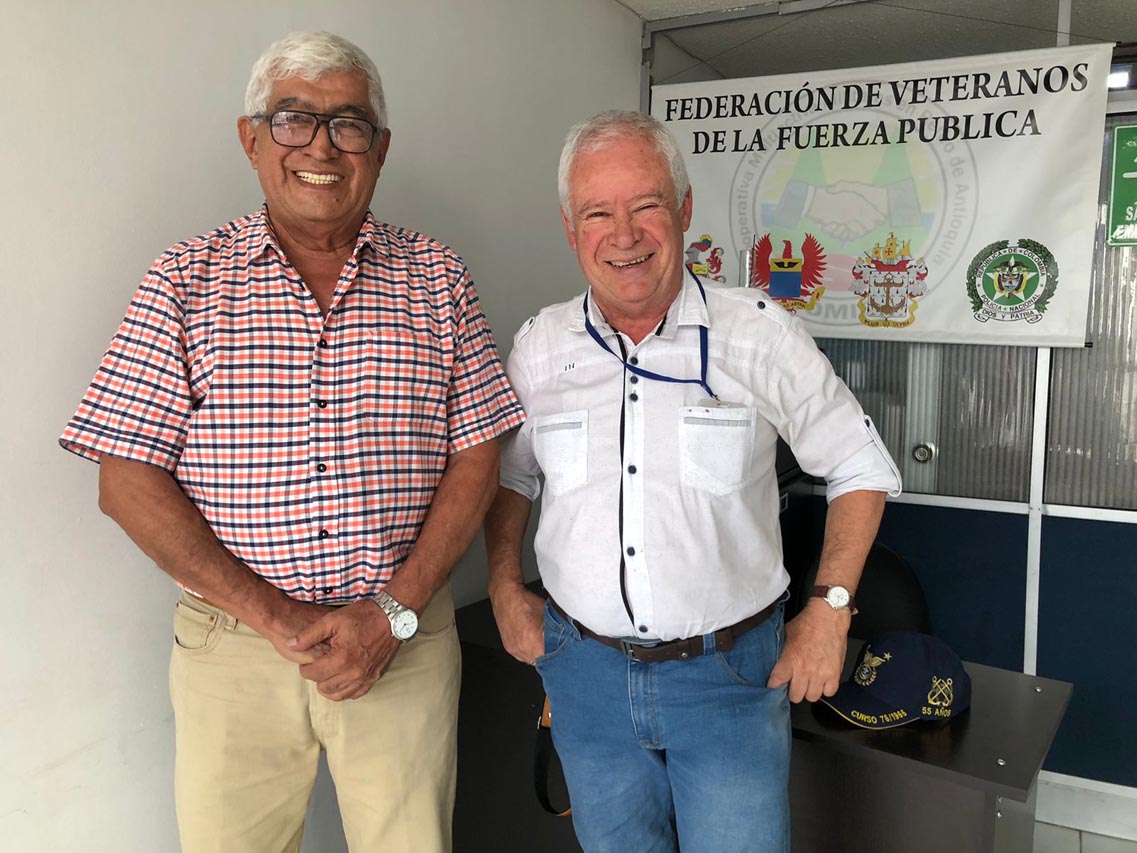 De izquierda a derecha, Jairo Mosquera, jefe técnico (r) de la Armada, y José Ramírez, técnico jefe (r) de la Fuerza Aérea.