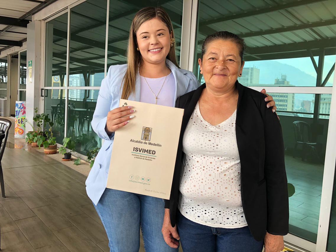 Luz Adela acompañó a su hija Maribel a recibir la resolución del subsidio Compra Tu Casa.Se postuló en el primer semestre de este año. Del proceso destacó que los profesionales de Isvimed son “calificados y empáticos”. “Tienen un grupo fantástico, me daban información de manera cordial e inmediata”, anotó.