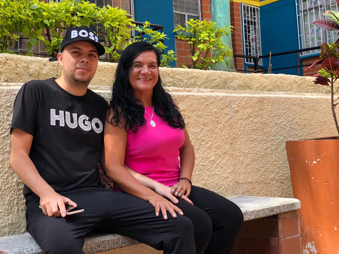 Juan Pablo Ossa y su madre, Adriana Bonilla, en su conjunto residencial en el barrio La Ladera.