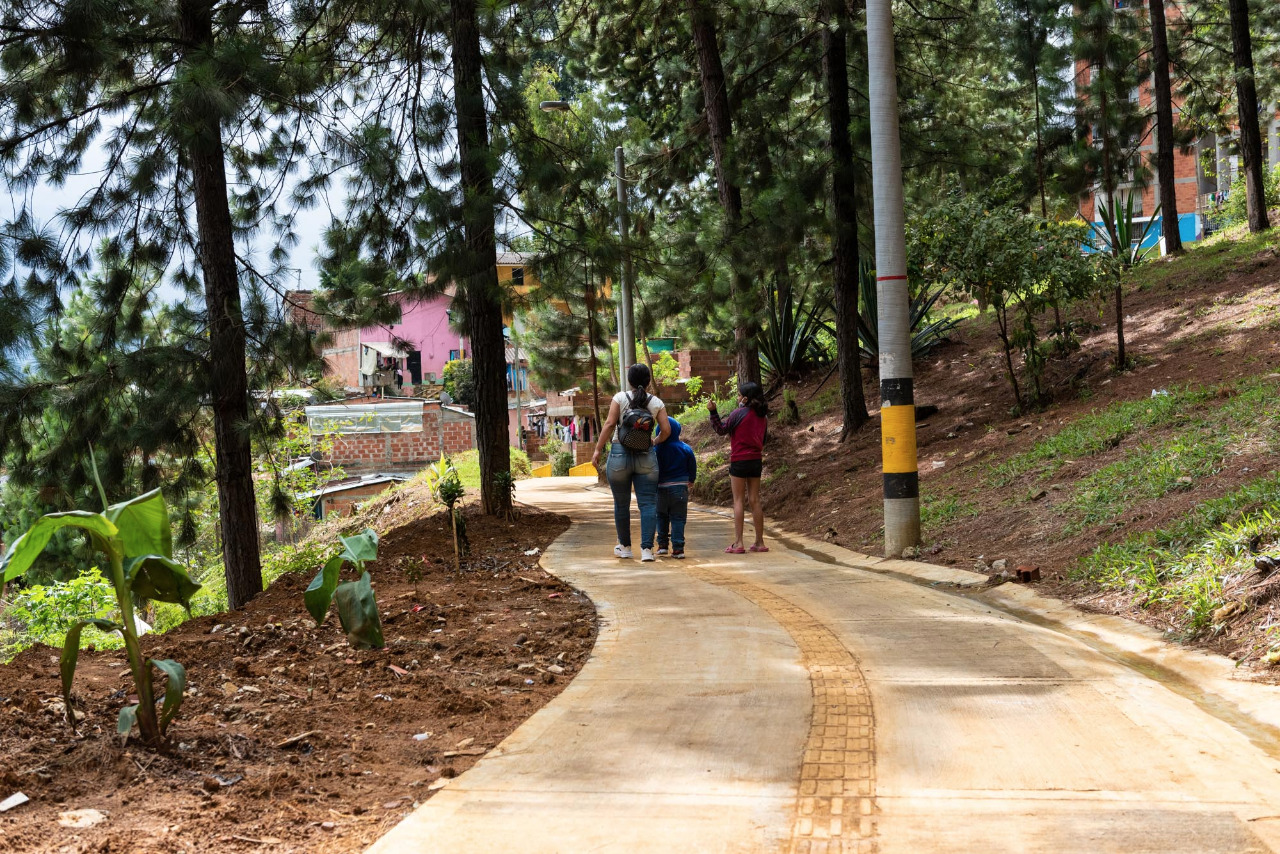 En las comunas 1- Popular y 3- Manrique se tienen abiertos 51 frentes de trabajo para la construcción de andenes, cunetas y escalas, y para la instalación de pasamanos y defensas viales. Algunos de los barrios beneficiados son: La Avanzada, Santo Domingo, Granizal, Carpinelo, La Esperanza, Raizal, La Salle, Versalles, Carambolas y La Cruz. En estas dos comunas han sido construidos 850 metros cuadrados de andenes y escalas, y se han instalado 1.816 metros lineales de pasamanos y defensas viales.