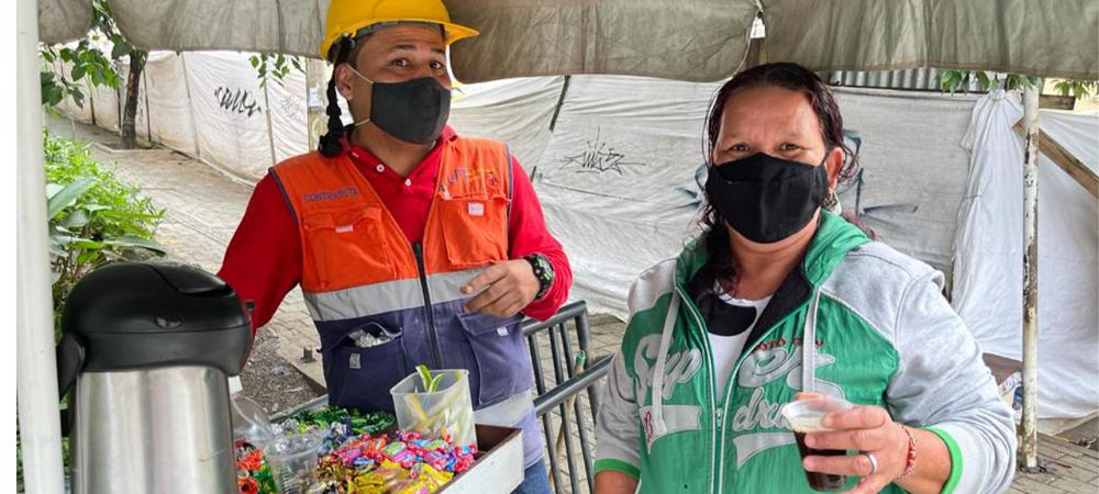 “Yo tenía mi puesto más hacia la avenida principal pero, cuando me di cuenta que iban a empezar las obras del Metrocable, me vine para acá. Usted sabe que a la mayoría le gusta tomar tinto después del almuerzo y sabiendo que acá iban a estar muchos trabajadores, pues agarré mis cosas y ya llevo un año en este lugar”.