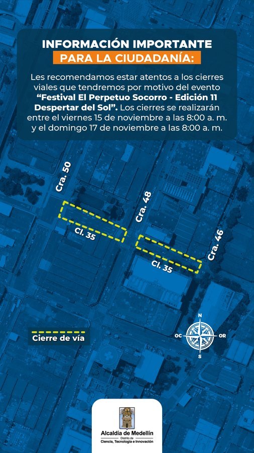 La Secretaría de Movilidad ha programado cierres viales para este fin de semana por eventos deportivos y culturales, que comienzan este sábado y van hasta el domingo, en la comuna 10 -La Candelaria, debido al Festival El Perpetuo Socorro.