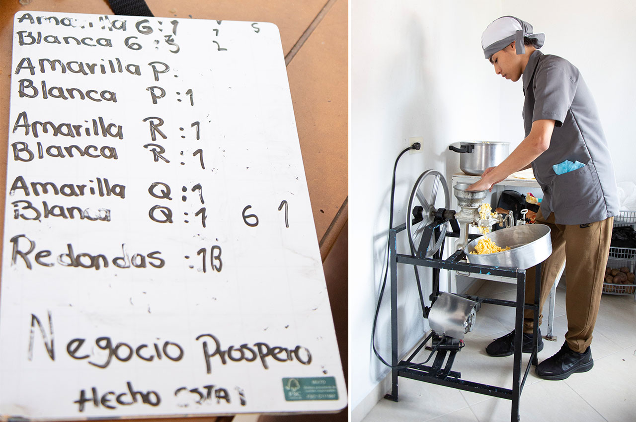 «Hacer las arepas nos ha unido como familia», reflexiona. Es un trabajo en equipo en el que incluso sus tíos, Hugo y Adolfo los hermanos de Catalina, contribuyeron construyendo un molino eléctrico para facilitar la molienda del grano.
