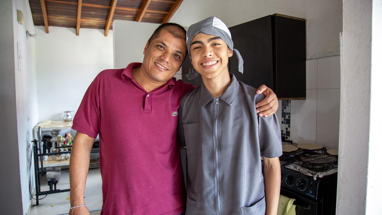 • Mateo Uribe Cardona, de 19 años, viste su gorro de chef con orgullo y se lava las manos antes de comenzar su ritual diario en la cocina. Desde la ventana de la sala de su casa, se cuela la luz del sol que ilumina el pequeño espacio donde da vida a su proyecto: ‘Arepas los caprichos de mamá’ un emprendimiento que nació como un capricho familiar, que se convirtió en una fuente de disciplina, amor y sustento y que tuvo el apoyo de recursos provenientes del Presupuesto Participativo.