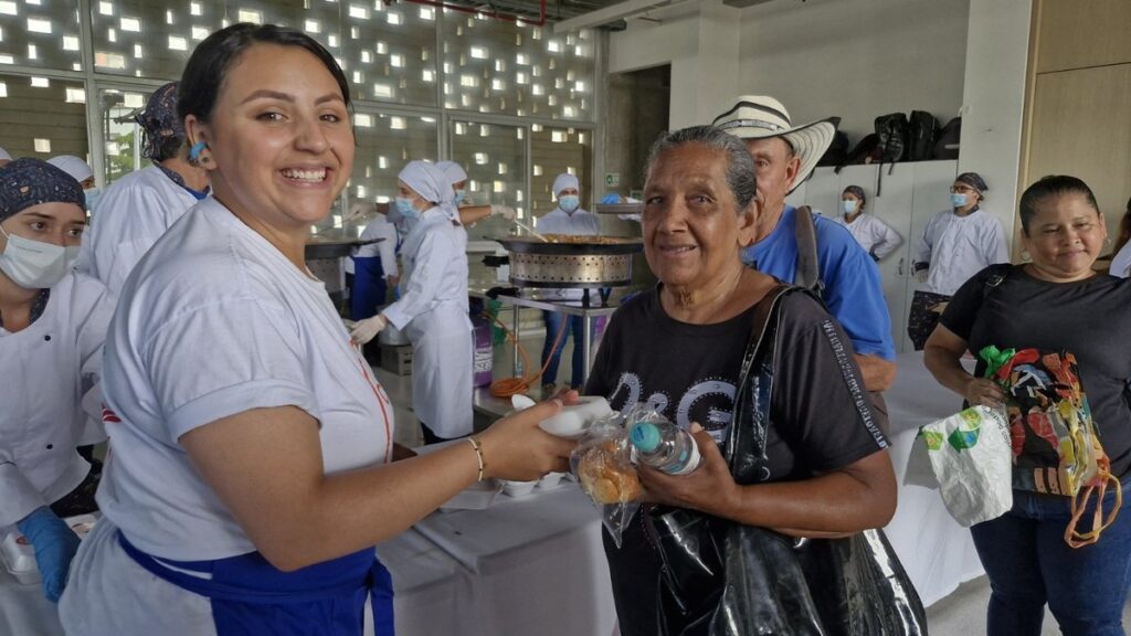 “Estamos entregando platos de comida dignos, calientes y nutritivos para decirles a las familias que sí es posible cambiar el mundo comiendo”, señaló la presidenta de Fundación Gastronomía Social, Cristina Botero.