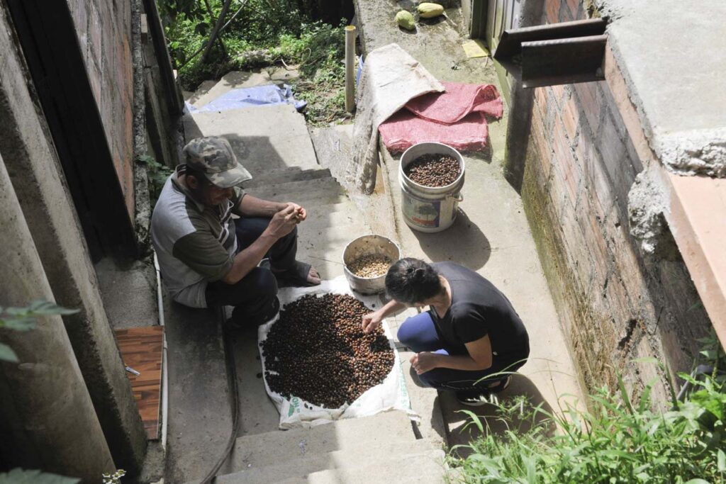 La historia de Diego está ligada a una niñez marcada por la herencia familiar. “Cuando vivíamos arriba, a 2400 metros de altura, mi papito como no tenía despulpadora, machacaba el café en una máquina antigua de los indios con una piedrita y yo ahí fui aprendiendo”.