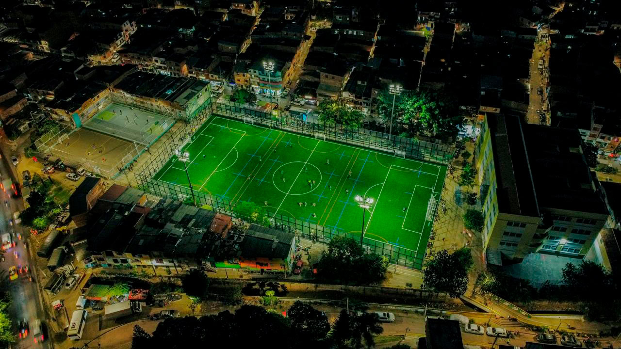 Esta es una de las 10 intervenciones realizadas en escenarios deportivos del Distrito. Se incluyó el retiro del tapete en mal estado, la nivelación de la superficie, la instalación de shock pad (base debajo del césped artificial) y 3.607 metros cuadrados de grama sintética certificada por FIFA Basic.