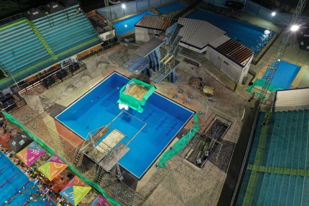 Para este evento continental, el Distrito inició con la demolición y el desmonte de la plataforma de clavados, una estructura que se construyó hace 52 años y que será reemplazada por una moderna infraestructura antideslizante en pro de la seguridad y el rendimiento óptimo de los competidores, que además cumple con los parámetros que exigen las autoridades deportivas internacionales.