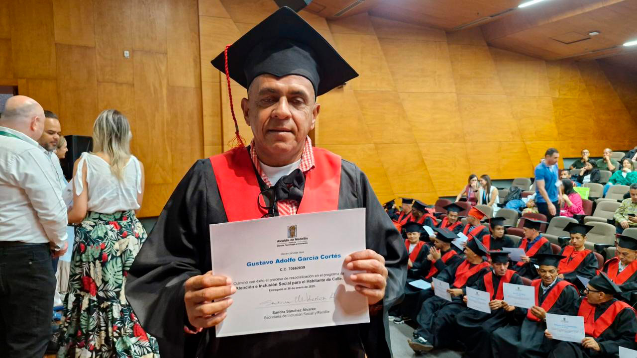 Como un paso para transformar sus vidas y acceder a nuevas oportunidades, la Alcaldía de Medellín graduó la primera cohorte, de 2025, de ex habitantes de calle que concluyeron su resocialización a través de los programas del Sistema Habitante de Calle.