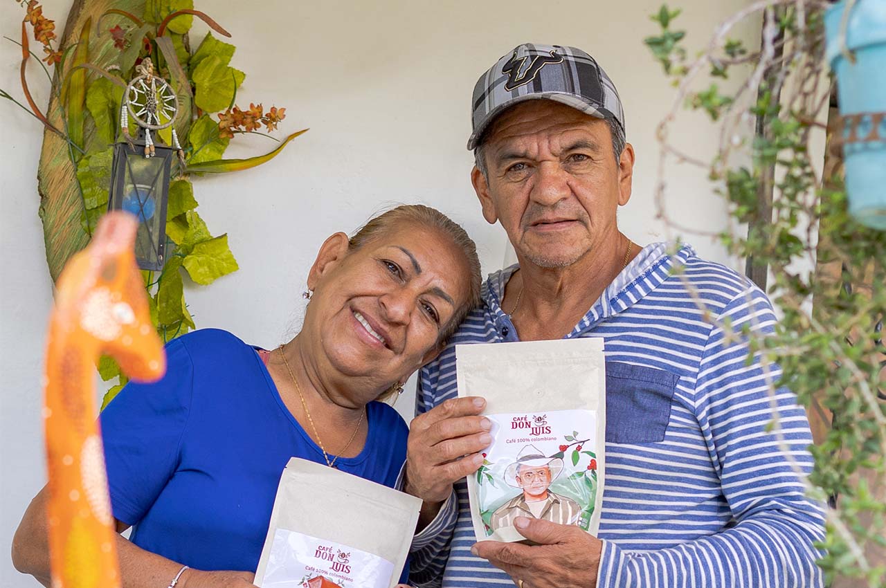 El rostro ilustrado de don Luis aparece en cada empaque del café, que hoy comercializan gracias a las vitrinas de Mercados Campesinos. Hoy él recorre su cultivo en compañía de su esposa y nos habla con orgullo de todo lo logrado y de lo que sueña para el futuro. Por ejemplo, recientemente sembró un poco más de mil árboles de dos nuevas variedades de café, el Bourbon y el Geisha, de las que habla como todo un experto, “las sembré porque quiero conseguir unas tazas muy buenas con las que pueda llegar a competir”.
