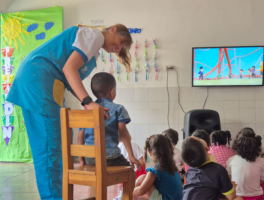 Por su parte, Dora Emilce Pino, coordinadora de Primera Infancia de Fe y Alegría, institución que opera el Centro Infantil Chispitas, dice que el jardín infantil es un espacio protector y que con esta intervención de infraestructura “se nota la diferencia”. Ella vive en el sector Popular 1 de la misma comuna y conoce el entorno de Chispitas desde hace 26 años.