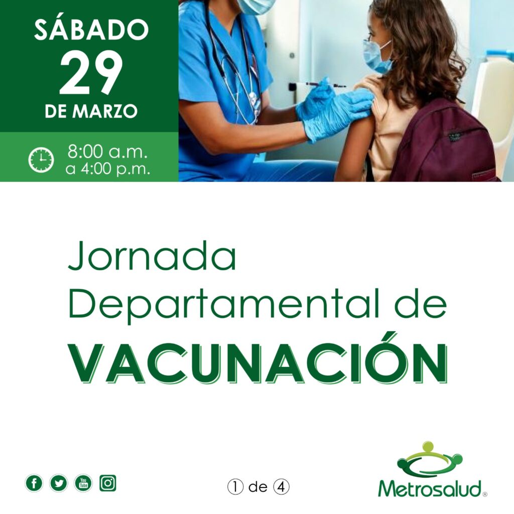 En Metrosalud queremos invitarte a participar en la Jornada Departamental de Vacunación a realizarse el próximo sábado 29 de marzo. Población objeto de vacunación: â...