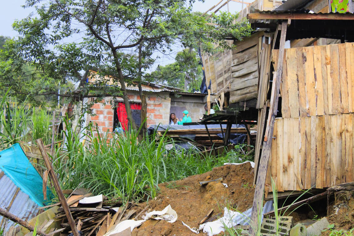 Durante la visita, se sensibilizó a los habitantes sobre el peligro inminente de permanecer en ese punto, donde la cercanía con la quebrada, la inestabilidad del terreno y las construcciones precarias hacen inminente el riesgo de colapso. Las viviendas están hechas con materiales como lona y tablas, en una zona que ya presenta agrietamientos visibles y señales de socavamiento del suelo.