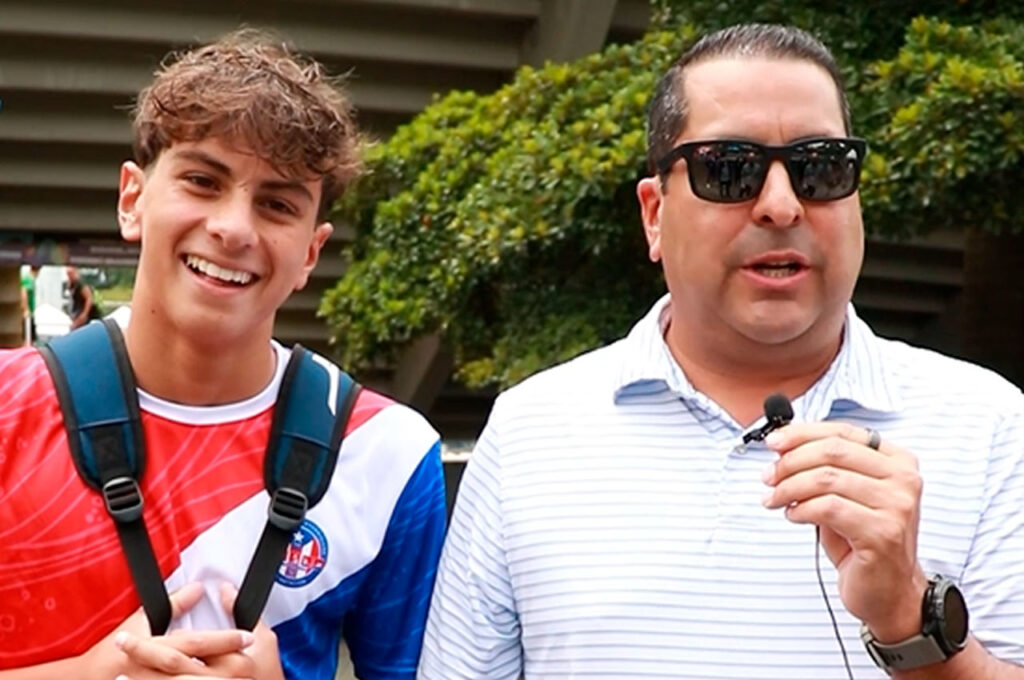 Exel Colón y su hijo Fernando llegaron desde San Juan, Puerto Rico. Fernando compite en waterpolo y ambos coinciden en que Medellín ha superado todas sus expectativas. “Las condiciones para los atletas, como para los visitantes, han sido de mucho agrado”, dice Exel con sinceridad. Fernando, con una sonrisa, agrega: “Me gusta mucho la comida, la gente. Se siente como si estuviese en Puerto Rico. Todo el mundo dispuesto a ayudar y a dirigirlo a uno cuando está perdido. De verdad, muy contentos con toda la gente de Medellín”.