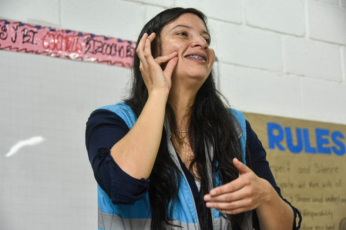 “Queremos brindarles el conocimiento sobre la lengua de señas para que Medellín sea una ciudad señante. La actividad que hemos realizado en el núcleo con los ‘profes’ ha sido muy positiva, para que conozcan otro mundo y eliminen las barreras de la comunicación. Queremos que los estudiantes sordos y oyentes tengan un espacio en común donde compartan sus saberes y conocimientos”, indicó la profesional de la Unidad de Atención Integral, Leidy Fuentes.