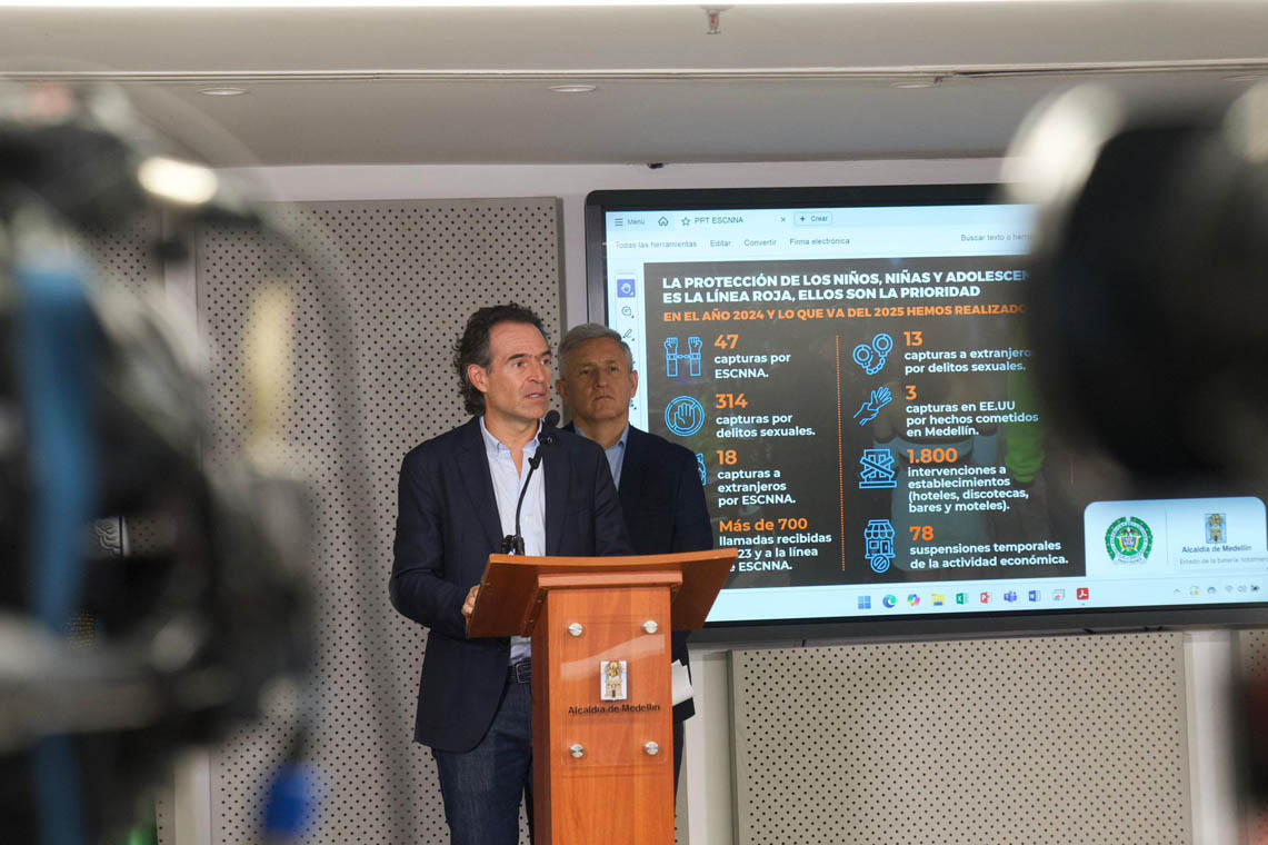 Tenemos claro que vamos a llegar hasta las últimas consecuencias en la estrategia que tenemos en la lucha en contra de la explotación sexual de niñas, niños y adolescentes. Cuando llegamos a la Alcaldía tomamos la decisión de visibilizar un tema que venía ocurriendo con la mayor gravedad y donde no hacían absolutamente nada”, concluyó el alcalde de Medellín.