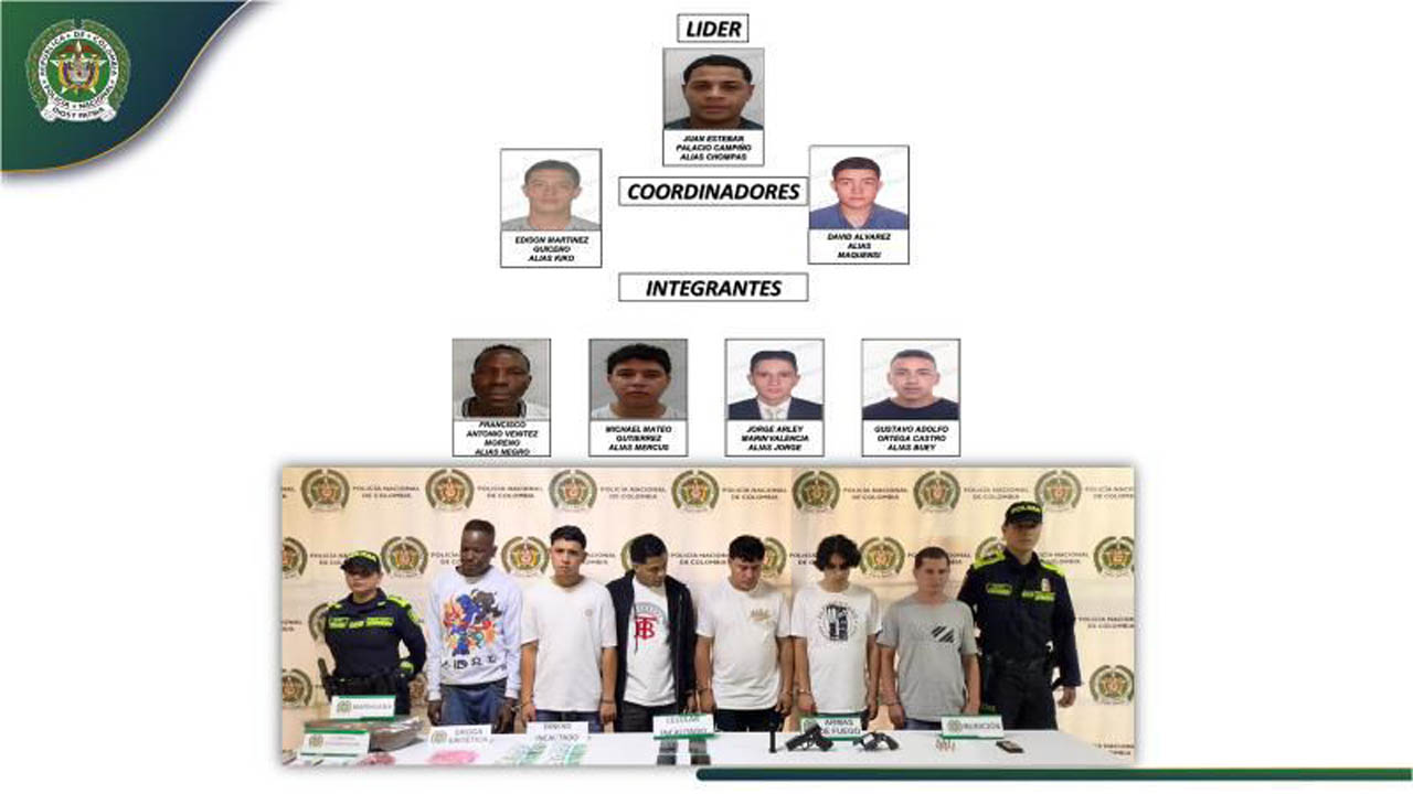 Las detenciones son el resultado de siete diligencias de allanamiento en Medellín y Bello, que, además, permitieron la incautación de un revólver calibre 32 con seis cartuchos, un arma de letalidad reducida, 59 cartuchos traumáticos, cuatro teléfonos celulares, $2 millones en efectivo, 125,6 gramos de 2CB y 2.442 gramos de marihuana.