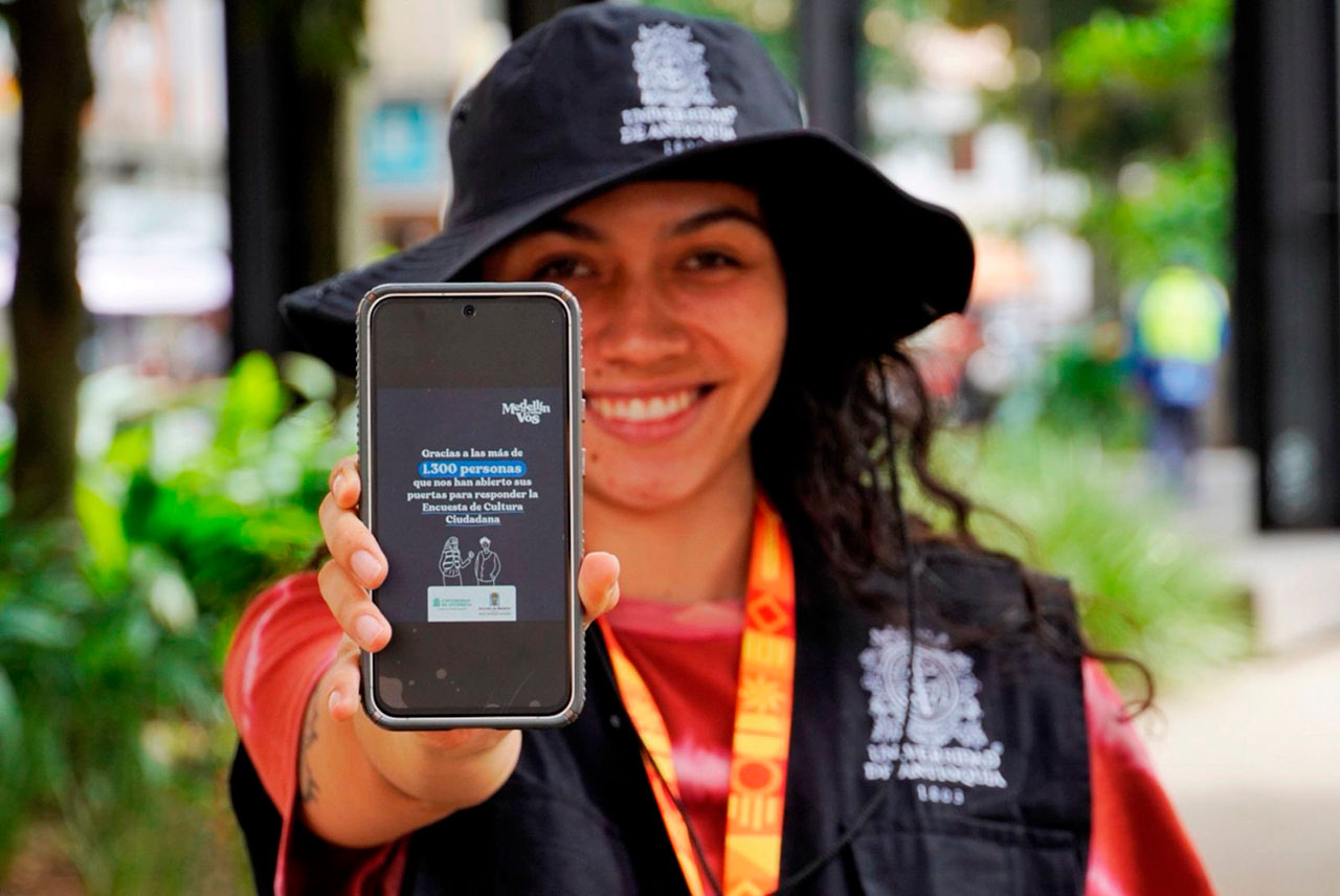 Queremos contarles que más de 4,000 hogares en Medellín serán visitados para realizar la Encuesta de Cultura Ciudadana, una iniciativa de la Secretaría de Cultura Ciudadana que busca conocer cómo vivimos la convivencia, el respeto, la participación y el cuidado del medio ambiente en nuestra ciudad.